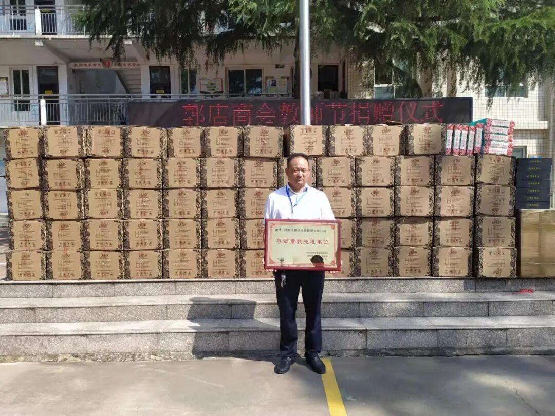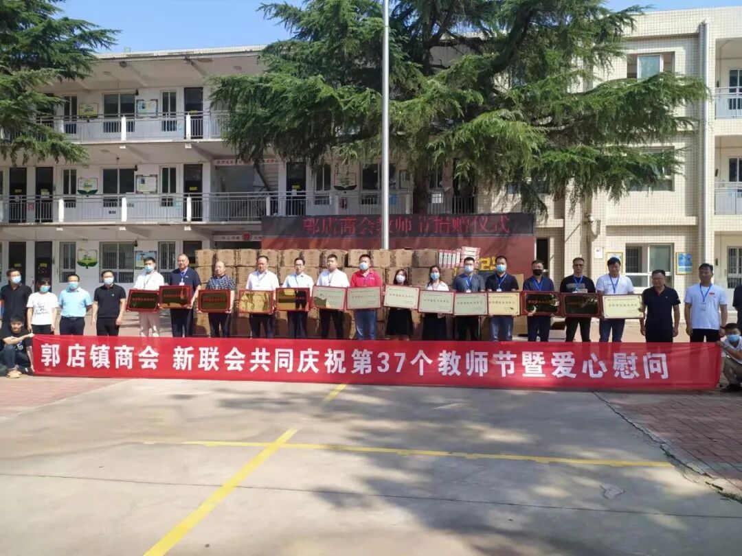 jiāo 教 shī 师 jiē 节 kuāi 快 lē 乐 2021年9月10日是第37个教师节,在这个歌颂教师伟大奉献精神的日子,上午10时许郭店镇政府、新郑市教育局及郭店镇多家企业一同走进郭店镇第一初级中学举办第37届教师节慰问活动。参加活动的主要领导有郭店镇党委委员、人大主席侯少利,郭店镇党委委员、纪委书记刘建欣,新郑市教育局副局长郭海峰,郭店商会副会长徐瑞、时智灵、王瑞玲、郭华明,玉泽物流董事长袁伯合、凯瑞物流董事长李宝庆等,飞腾物流董事长林春光代表公司参加了此次活动。 | ||